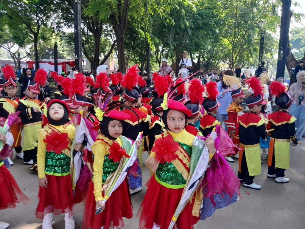Siswa siswi TA-TK Al-Azhar Syifa Budi Jatibening ikut serta Dalam rangka memperingati Hari Pahlawan yang jatuh pada tanggal 10 Nopember mendatang, Sanggar Seni Seruni yang bersekretrariat di Taman Mini Indonesia Indah.