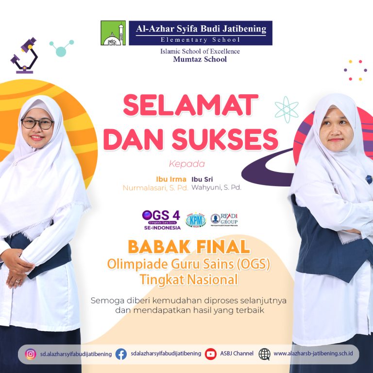 Alhamdulillah, perwakilan dari SD Al-Azhar Syifa Budi Jatibening berhasil sampai ke babak Final yang akan dilangsungkan pada 20 Oktober 2024 di Bogor. Mari kita doakan agar diproses selanjutnya mendapatkan hasil yang terbaik dan keluar sebagai juara.