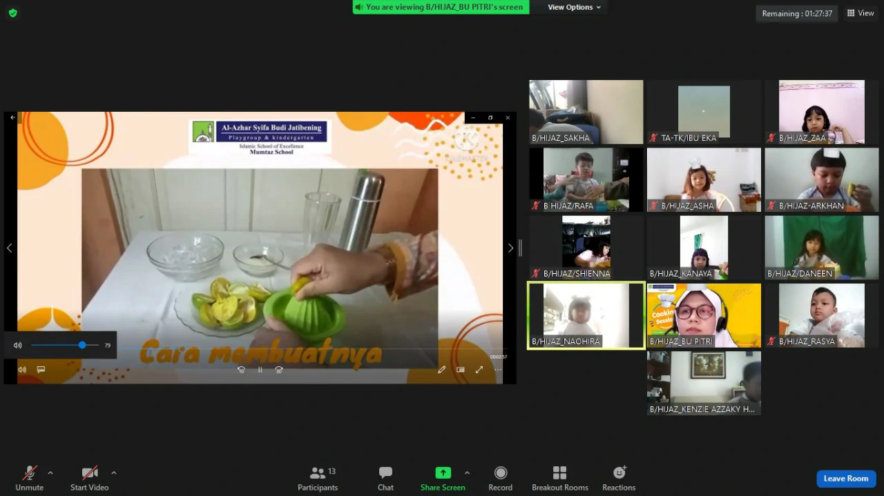 Pada kegiatan Cooking Session kali ini, siswa siswi TA-TK Asb Jatibening diajarkan membuat Cake dan Juice bersama sama,dan pelaksanaannya masih dilakukan secara Online mengingat masih di Era Pandemi Covid-19.